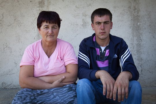 Razija Aljic und ihr einziger lebender Sohn Ruzmir. Nach der Rückkehr in ihr Heimatdorf Lukavica Rijeka starben 1996 der 19-jährige Sohn Nedzad Aljic, zwei Jahre später ihr Mann und 2011 ihr zweiter Sohn Yusuf sowie ihr Schwager bei Minenexplosionen. / Foto: Michael Biach, n-ost