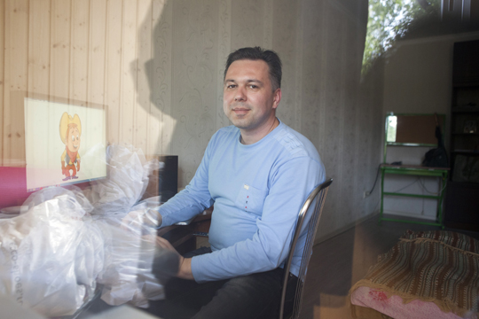 Igor Kleschyk animiert in seiner Wohnung in Minsk Kinder-Illustrationen für ein polnisches Kinostudio - offiziell ist er arbeitslos. / Foto: Andrei Liankevich, n-ost