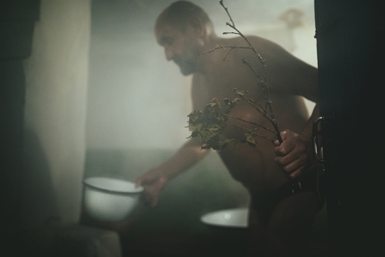 Nach meiner ausgedehnten Wanderung durch das Stadtgebiet treffe ich mich wieder mit Patzan. Er hat heute für mich seine Sauna angeheizt, sein Stück Erinnerung an Sibirien, wo er geboren ist. Die Sauna ist ein ehemaliger Küchenherd, um den er ein etwa zwei Mal zwei Meter großes Häuschen gebaut hat. Mit Schilfrohr entzündet er ein Feuer, das eine große Schüssel mit Wasser erhitzt. Nach einer halben Stunde ist das Dampfbad perfekt, für Patzan ist die Sauna der größte Luxus seines ärmlichen Lebens, er schrubbt sich mit Seife ab, reibt sich wild mit einem nassen Netzstoff den Rücken, die Arme den Kopf, schlägt sich selbst mit einem Eichenzweig am ganzen Körper ab. Zwischendrin immer wieder ein Glas Bier muss natürlich auch sein.