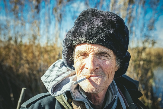 Alkoholsucht ist das große soziale Problem im Donaudelta, die Statistiken sprechen eine deutliche Sprache. Alkoholismus, Armut, Arbeitslosigkeit und Verwahrlosung, das ist der Alltag vieler Männer hier, nach dem in der Wendezeit, als während der korrupten Regierung von Adrian Bastase das ganze Delta an dubiose Oligarchen verscherbelt wurde, die rücksichtslos in die eigenen Tasche wirtschafteten und keine nachhaltigen Strukturen schufen. Seit einer Woche bin ich jetzt wieder im Donaudelta unterwegs, die letzten warmen Herbsttage, Sonnenschein, warmherzige Menschen in einem Landstrich, den ich seit meinem ersten Besuch sehr liebe, aber immer wieder holt mich die unsagbar harte Lebensrealität vieler der Bewohner doch ein. Wenn ich ihre Gastfreundschaft genieße, manche würden buchstäblich das letzte Hemd teilen, bricht es mir immer fast das Herz. Ich hoffe, meine Bilder von diesen Menschen zeigen ein bisschen die Nähe, die trotz der Sprachbarriere, immer mit Cristian, der mir übersetzen hilft, schnell aufgebaut war. Die Einsamkeit und die Isolation ist eine existentielle Konstante im Leben dieser Menschen. Und meistens sind es die Alten, die es am härtesten trifft, die, die geblieben sind, als alle Anderen fortgingen, so lange sie noch konnten.