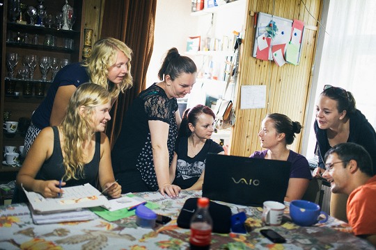 Die Mitarbeiter des Projekts im Sitzungsraum des Tageszentrums.
