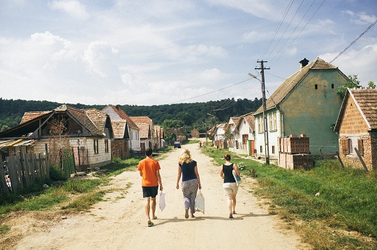 Drei Volontäre auf dem Weg ins Roma-Viertel um Nachhilfe zu geben.