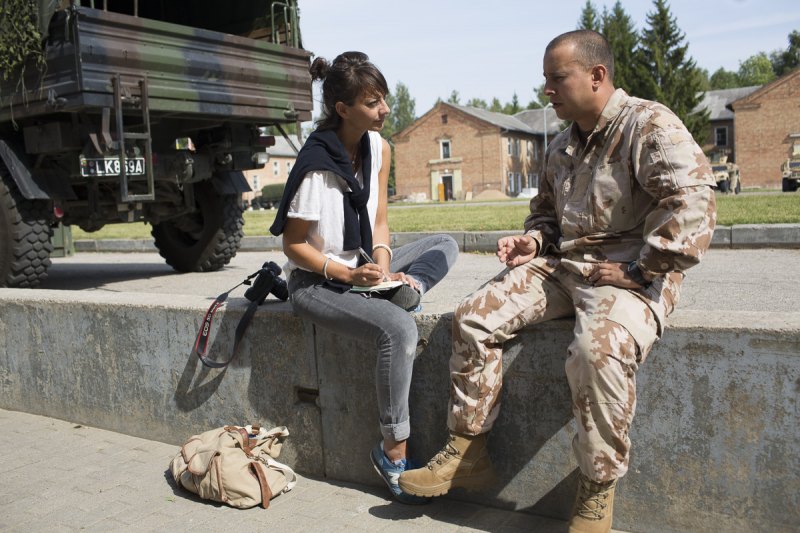 Prune Antoine im Gespräch mit dem Leutnant der ukrainischen