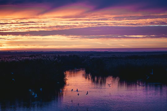 Hier an der Schwarzmeerküste lagert die Donau Sedimente ab, die über Jahrtausende das Delta gebildet haben. Ein einzigartiger Lebensraum. Ein immens großes Feuchtgebiet. Ein Netz aus Flussarmen, Kanälen, künstlichen und natürlichen Seen, schwimmenden Inseln und undurchdringlichen Schilfwäldern, die bis zu fünf Metern hoch werden.