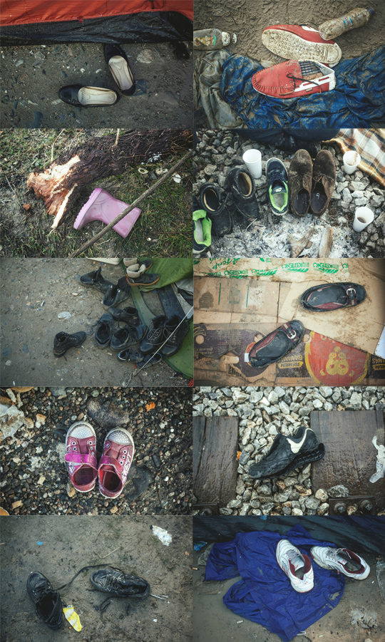 „Vor den Zelten in Idomeni stapeln sich Schuhe der Flüchtlinge. Sie lassen erahnen, welchen anstrengenden und kräftezehrenden Weg die Menschen hinter sich haben. Am schlimmsten war es für mich zu sehen, wie viele Kinderschuhe darunter sind.