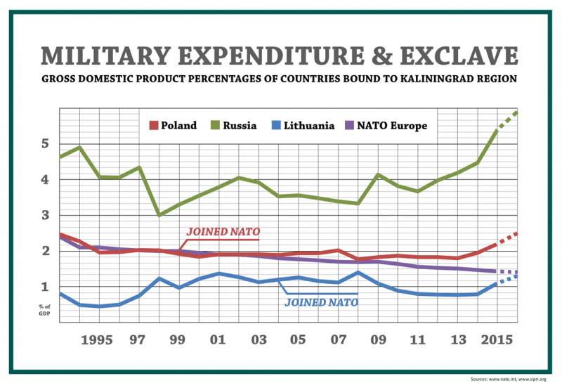 Seit 2014 steigen die Militärausgaben in den an Kaliningrad angrenzenden Gebieten an. / Infografik: Gil Skorwid