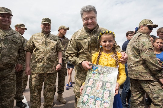 Präsident Petro Poroschenko als Oberbefehlshaber bei einem Truppenbesuch in Schytomyr. Foto: Mikhail Palinchak; www.president.gov.ua.